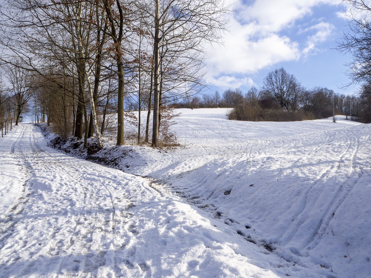 Obvykle v zimní sobotu jezdíváme na nějaký ten běžkový výlet, dokud nám zima přeje. Nicméně musíme taky doufat v přízeň nebo nepřízeň počasí. V pátek valnou část dne sněžilo, ale navečer se to změnilo spíš v déšť a relativně se oteplilo i ve vyšších polohách. Proto zamýšlený výlet odkládáme na neděli. Nicméně přes den přichází avizované ochlazení a s ním i sluníčko. Když je odpoledne po obědě hezky, proč si to nevzít pěšky přes kopec kolem rozhledny na Brusné u Bludova, méně tradičně kolem zahrádek u Hambalku (jsou tam hliněné cesty, takže by hrozilo i bláto). Naštěstí celkem rychle zamrzá, i nějaký ten sníh nám kolem zůstal ležet.