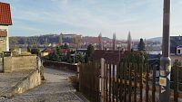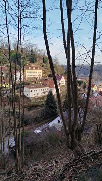 Od nádraží v Pirně přes most do městské části Copitz. Z náměstí spolu s vinařskou cestou vede cesta značená žlutou tečkou. Po dlouhých schodech vystoupáme na po…