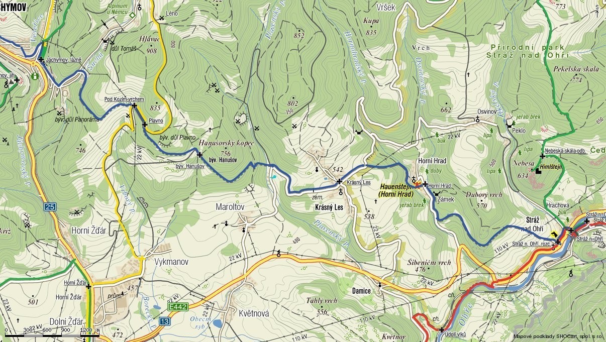 Trasa: Jáchymov-Stráž nad Ohří, po modré 15 km