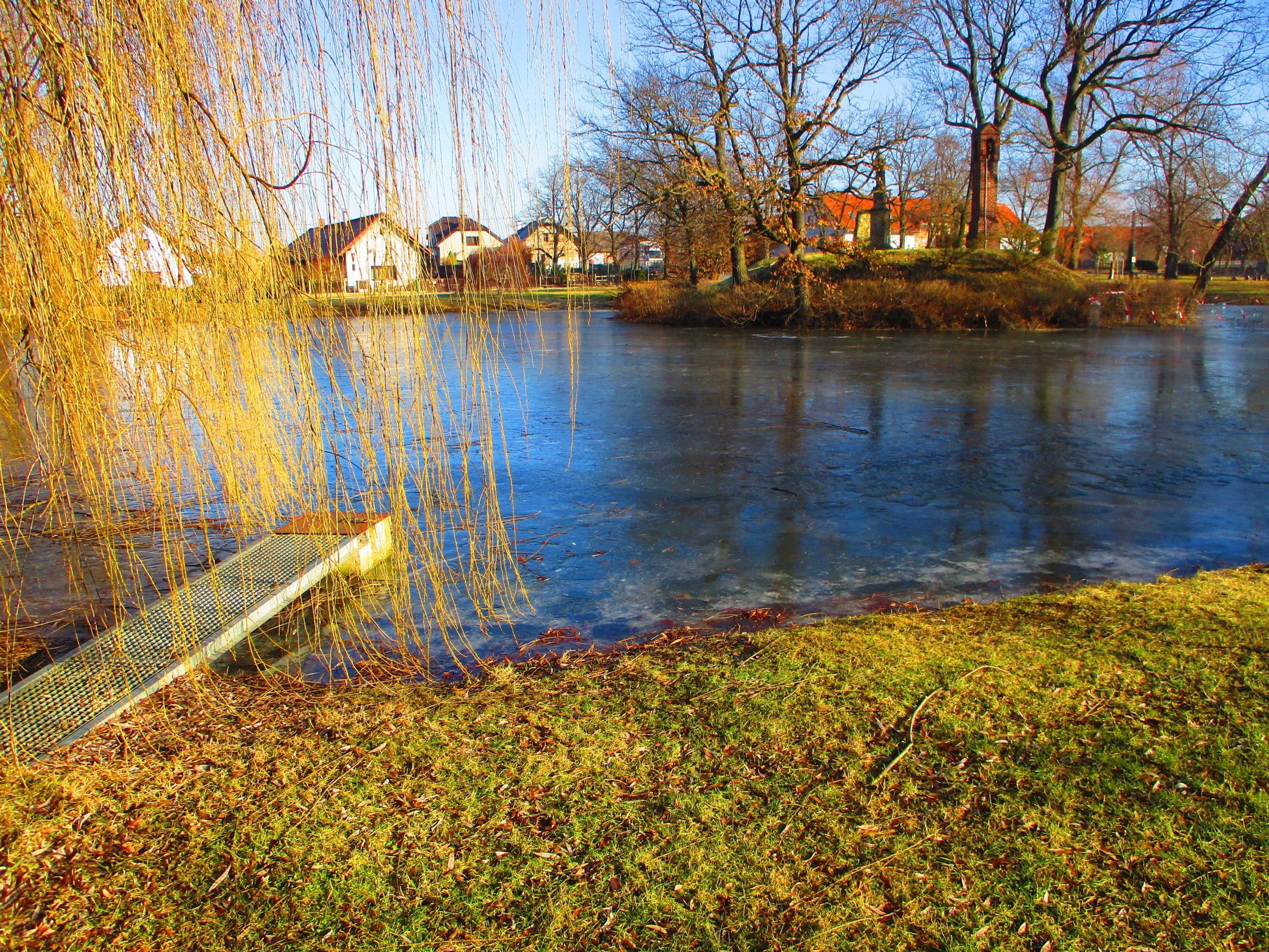 Několik fotografií z dochovaného a památkově chráněného tvrziště v Obědovicích, které tvoří jakýsi poloostrov do tamního návesního rybníka, jenž je od dávných dob nazýván jako Lednice, protože sloužil jako zdroj ledu pro panský pivovar, i když např. ve Wikipedii je pojmenován jako Návesní.
