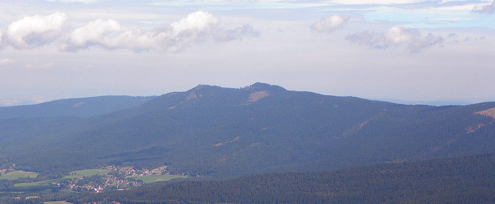 Vrch na státní hranici s Německem dosahuje 1293 m n. m., leží 8 km západně od Hojsovy Stráže.