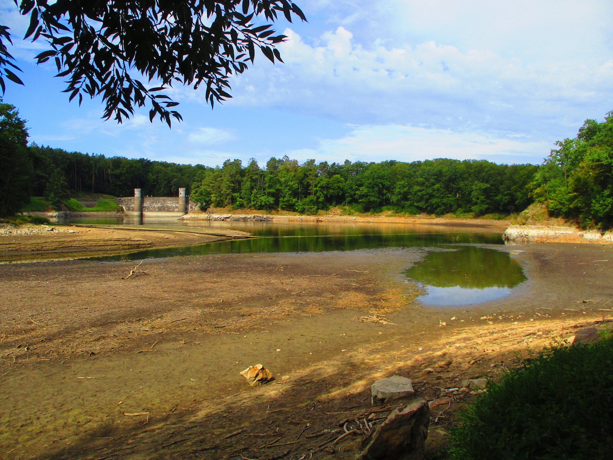Vodní nádrž Pařížov, jež je pomalu na suchu