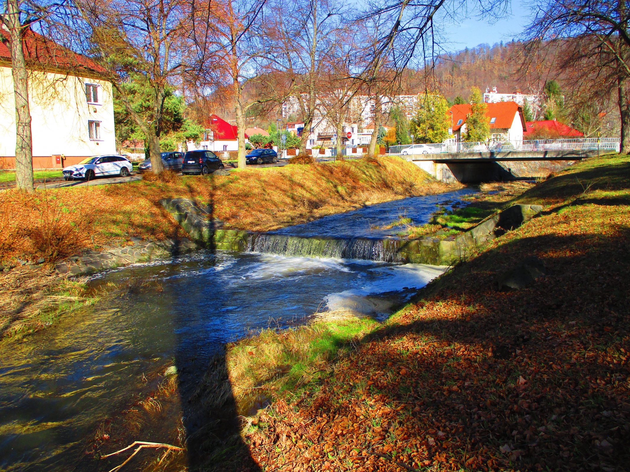Na mnoha místech bublající a zurčící Zlatý potok je velkou okrasou míst, jimiž protéká, ale není to jen jeho různými meandry, peřejemi a kaskádami v Pekelském a Hedvičině údolí, kde se na něj v předvesní nebo již přímo za jarního tání nedá vynadívat, jak se vody dravě hrnou kamennými přehrážkami, ale jeho tok se hezky vine i v malebném městečku Třemošnici a vůbec nevadí, že byl zregulován, aby nepřinášel z železnohorských strání a úbočí zkázu v podobě velkých povodní, jako tomu mnohdy bývalo dříve, neboť regulační práce ze 20. let 20. století za více než 2 400 000 Kč, hrazené okresní správní komisí v Čáslavi, nadačním velkostatkem Ronov nad Doubravou, obcí Třemošnicí, třemošnickým mlynářem Josefem Černohubem, hedvikovskou firmou Čáp a spol., prof. Dr. Janem Krčmářem v Třemošnici a subvencované státním melioračním fondem a podporou českého zemského správního výboru nebyly jen tak odbyty a dbalo se i na jejich vizuální podobu, takže i pohled na jeho dolní tok je oku lahodící, což dokazuje několik mých fotografií přímo z centra Třemošnice, jemuž vytváří ozdobná až kouzelná zákoutí, která rovnou vybízejí k procházkám.