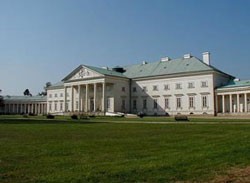 Zámek Kačina si nechal jako svoje representační sídlo postavit v letech 1806-24 Jan Rudolf Chotek, tehdejší president gubernia a nejvyšší purkrabí Království českého. Plány vypracoval saský královský architekt F. Schuricht a stavbu prováděl pražský stavební rada J.P.Jöndl a v posledních letech arcibiskupský olomoucký stavební rada A.Arche. Funkčně je zámek rozčleněn na hlavní centrální budovu s representačními prostorami a obydlím hraběcí rodiny, na dvě čtvrtkruhová k ní přiléhající nižší křídla se sloupovými kolonádami s hostinskými pokoji a na dva na ně navazující pavilony. V levém je umístěna nikdy nedostavěná zámecká kaple a zámecké divadlo dokončené až v polovině 19. století. V levém je Chotkovská knihovna s více jak 40 000 svazky naučné i krásné literatury z 16. až 19. století. Zámek je zasazen do rozsáhlého přírodně krajinářského parku, založeného již roku 1789 podle plánů slavného vídeňského botanika F.N. Jacquina.