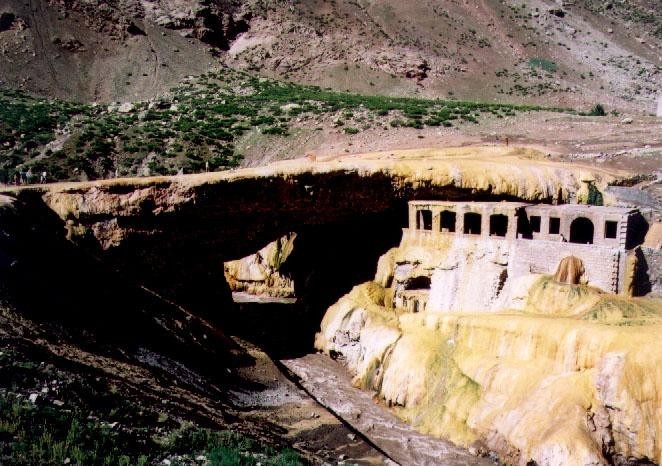 Puente del Inca: Místo odkud většina výprav začíná svou cestu. Zde vystoupí z autobusu. V místě jsou pozůstaky termálních lázní zničených zemětřesením.