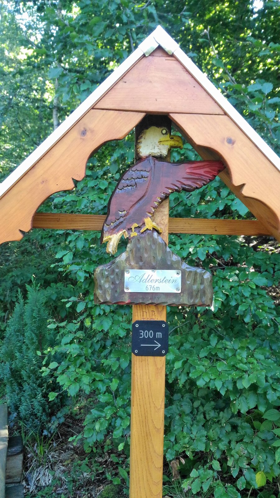 Na vrcholu Adlersteinu stojí žulový sloupek saské královské triangulační sítě číslo 87 z roku 1869.