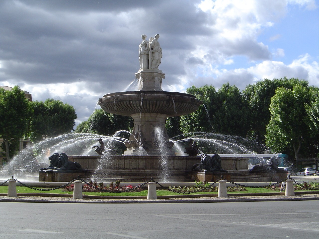 Největší je La Rotonde (1860) – monumentální fontána s třemi sochami: Spravedlnost (hledící směrem k Aix-en-Provence), Rolnictví (hledící k Marseille) a Umění (hledící k Avignonu).