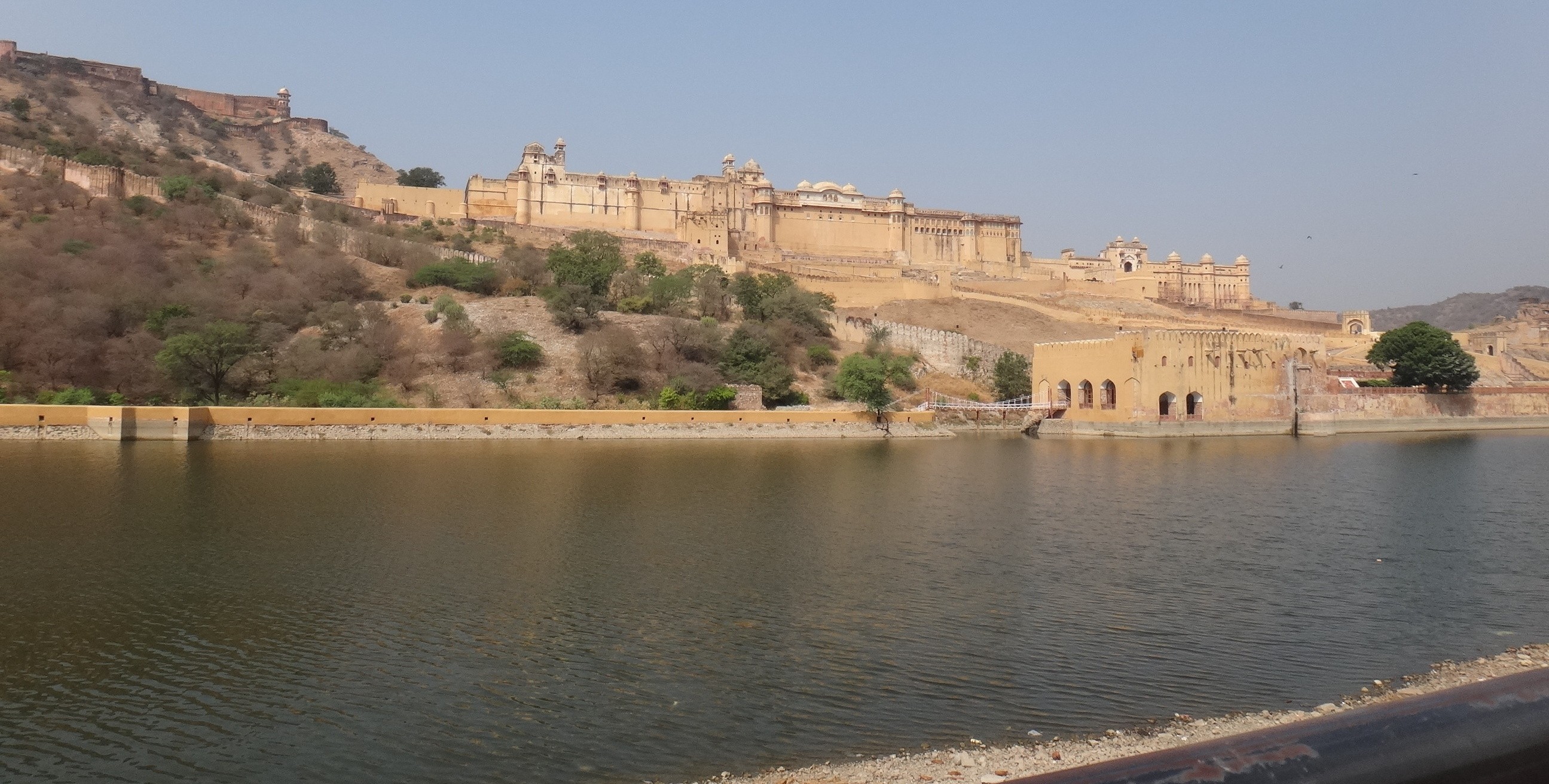 Město Jaipur, nazývané také růžové město, je hlavním městem státu Radjastan v Indii. Jednou z velmi atraktivních památek, kterou jsme si prohlédli v jeho okolí (11 km), byla pevnost Amber, tyčící se na kopci nad jezerem Maota. Dolů k jezeru jsme dojeli autobusem, pěšky jsme zašli k nedalekému stanovišti slonů, vystáli si krátkou frontu a za chvíli již nasedáme na hřbet slona a pokračujeme k pevnosti. Cestou se kocháme krásnými pohledy nejen dolů k jezeru, ale také na okolní Hory. Pevnost Amber byla vystavena v 16. století za panování krále Akbara jeho generálem Raja Man Singhem I. (1550-1614). Ten se stavbou započal v r. 1592, vše je vystavěno z bílého mramoru a červeného pískovce a je známá tím, že zde byly použity stavební prvky hindu a rajput.