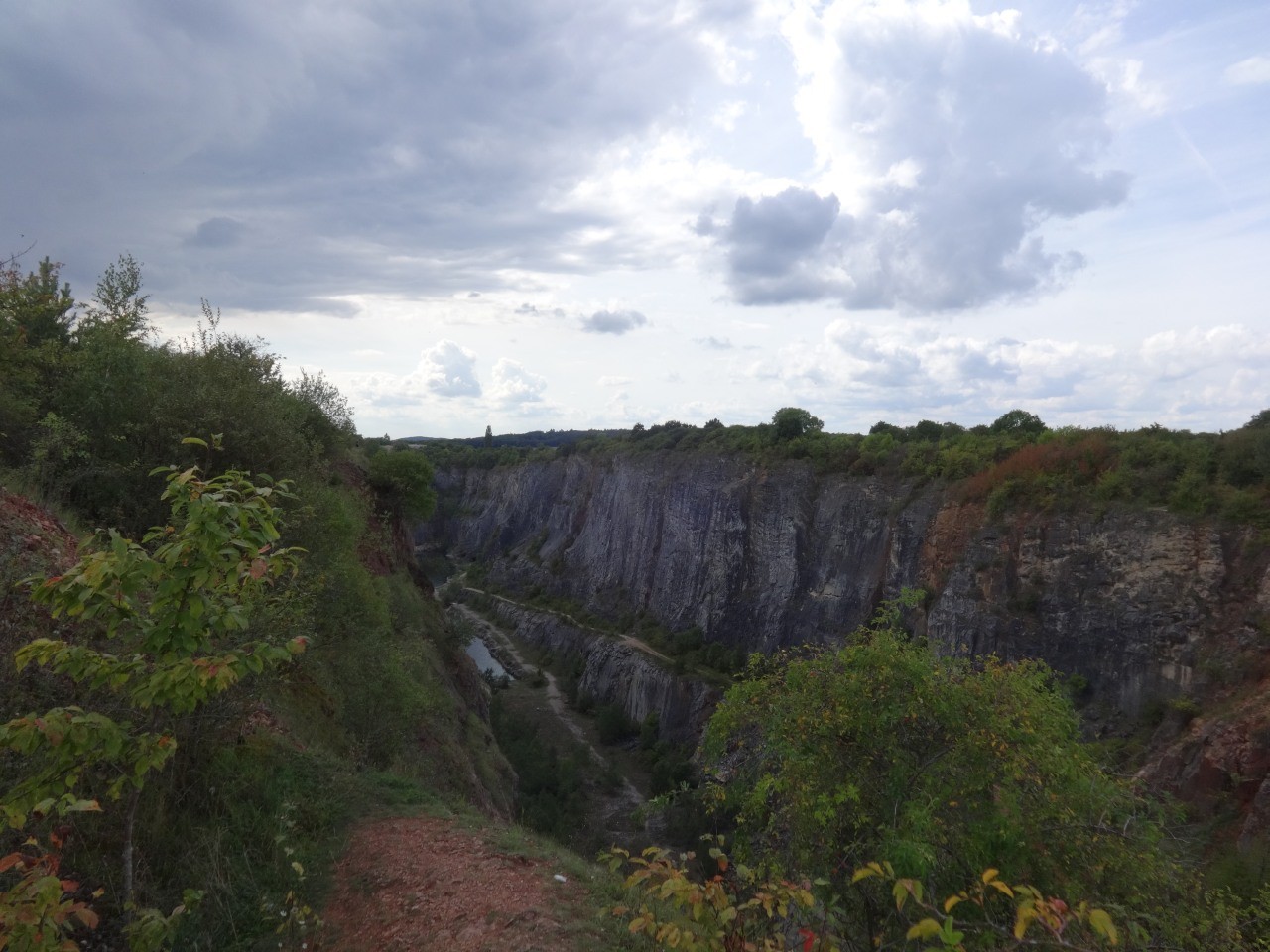 Na konci lomu Velká Amerika se otvírají zajímavé pohledy a lze s opatrností kousek dolů sejít. Vidíme sice na dně lomu lidi chodící i koupající se, ale s ohledem na naši vlastní bezpečnost však musíme respektovat, že nejen do tohoto, ale i do všech dalších lomů, kolem kterých půjdeme, je vstup zakázán.