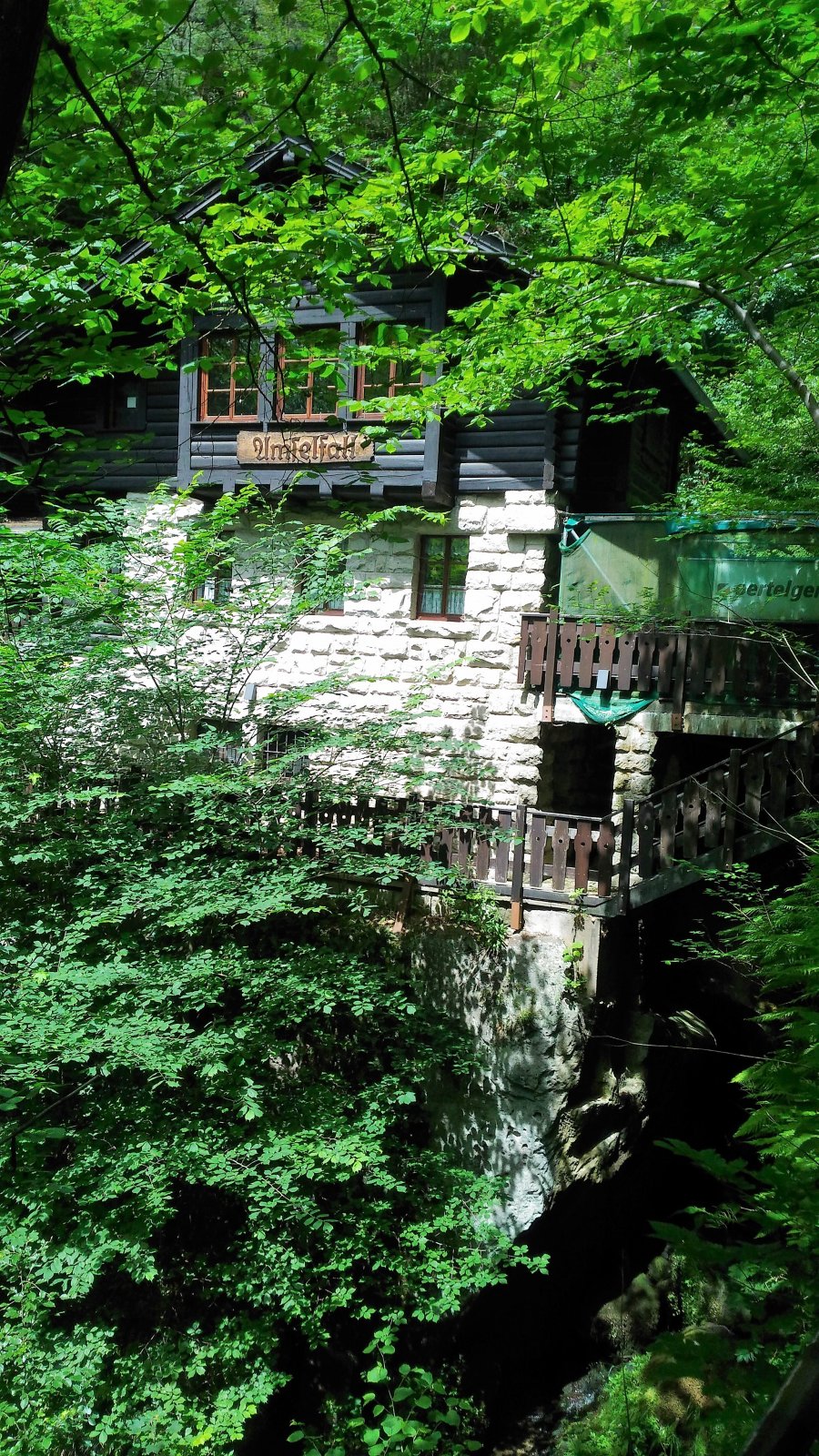 Od roku 1830 stojí u vodopádu hostinec, ke kterému byly pak přistavěny další budovy. Dnes je zde chata Národního parku Saské Švýcarsko a restaurace. Z důvodu nebezpečí pádu kamenů jsou budovy do odvolání uzavřeny.