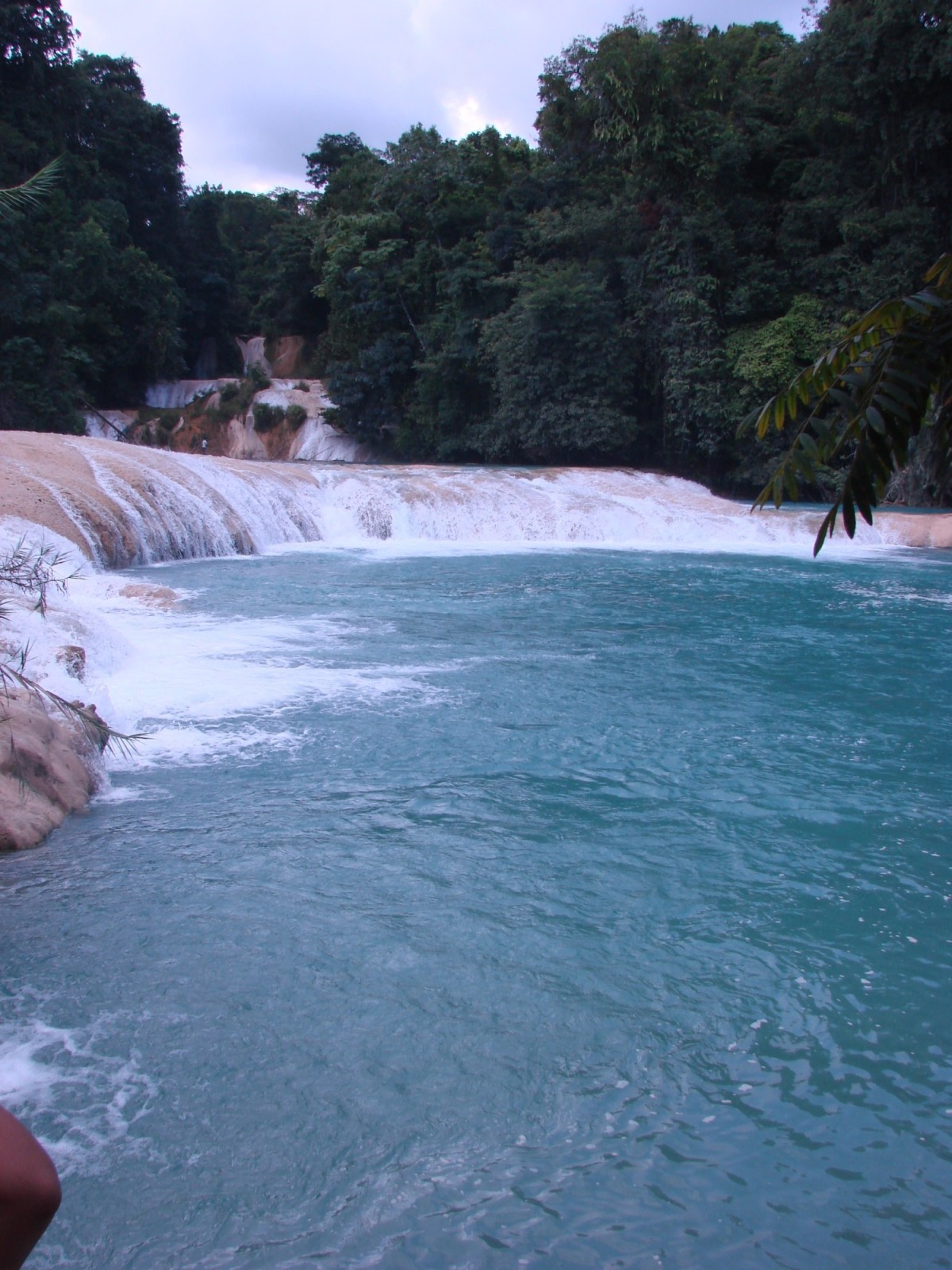 Překrásné vodopady na řece Tulija jižně od Palenque již název vodopádu naznačuje asi jaké budou. Ale pozor záleži na počasí pokud bylo několik dní před návštěvou krásne počasí a svítilo sluničko tak voda skoro celého toku řeky je extremně zbarvena do Modra a pokud pár dni před navštěvou pršelo tak raději výlet na toto krasné místo přesunte protože řeka má v tu chvíli barvu jako každá jina.voda proteká stovky metrů přes různé skalní terasy pod kterýma je možnost se vykoupat.