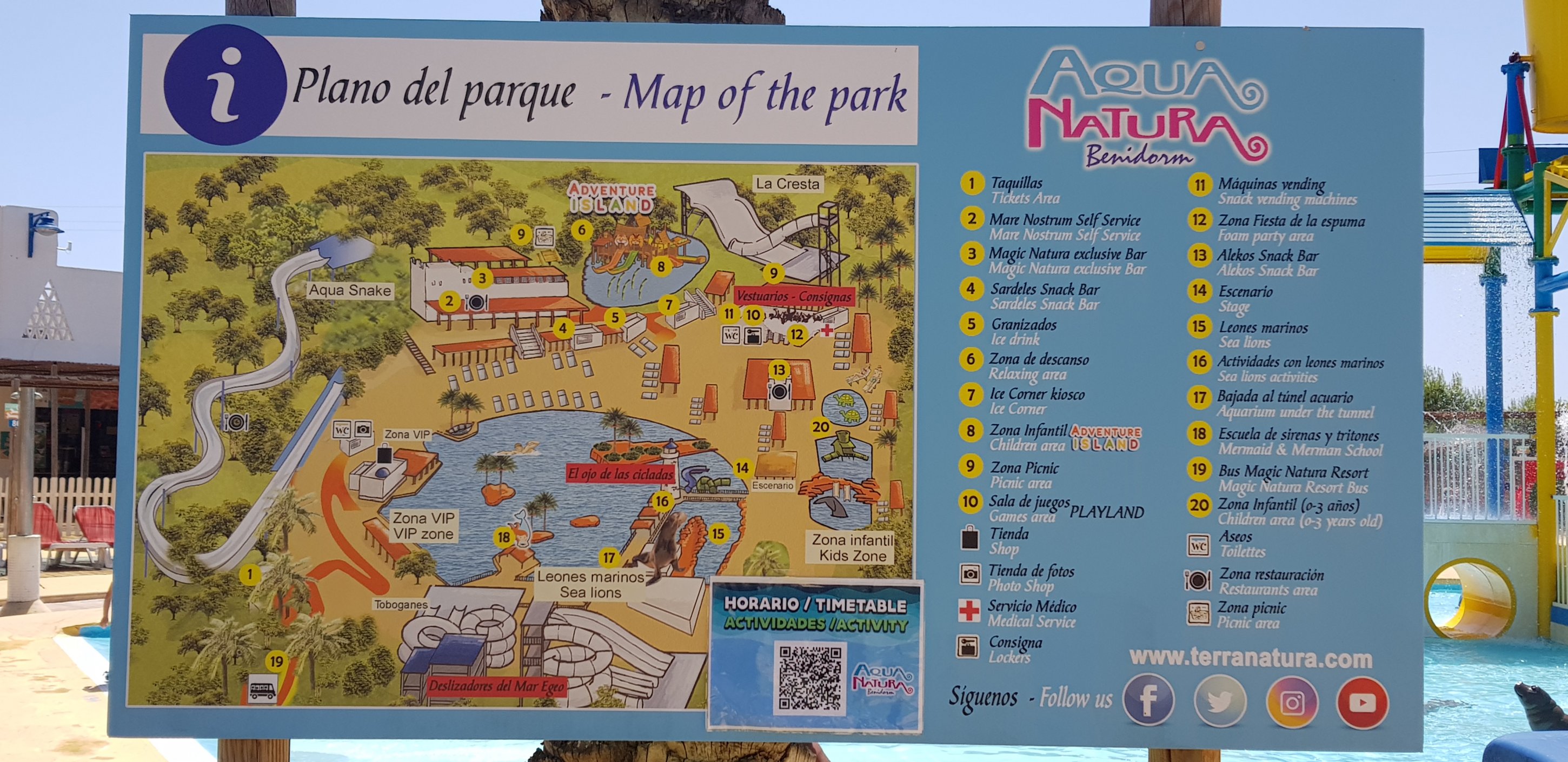 Aqua Natura, nejnovější a nejmodernější vodní park v Benidormu. Tesně sousedí se ZOO Terra Natura. Park se skládá z jedinečných atrakcí, jako je Tornádo, The Crest (evropský unikát), Kamikaze, Adventure River, vlnový bazén s gejzíry a vodopády, Black Hole, Adventure River, cikcak-obří skluzavka a více než 700 metrů závratné skluzavky a díky exkluzivním oblastem pro děti bude den zábavy a vzrušení zaručen!