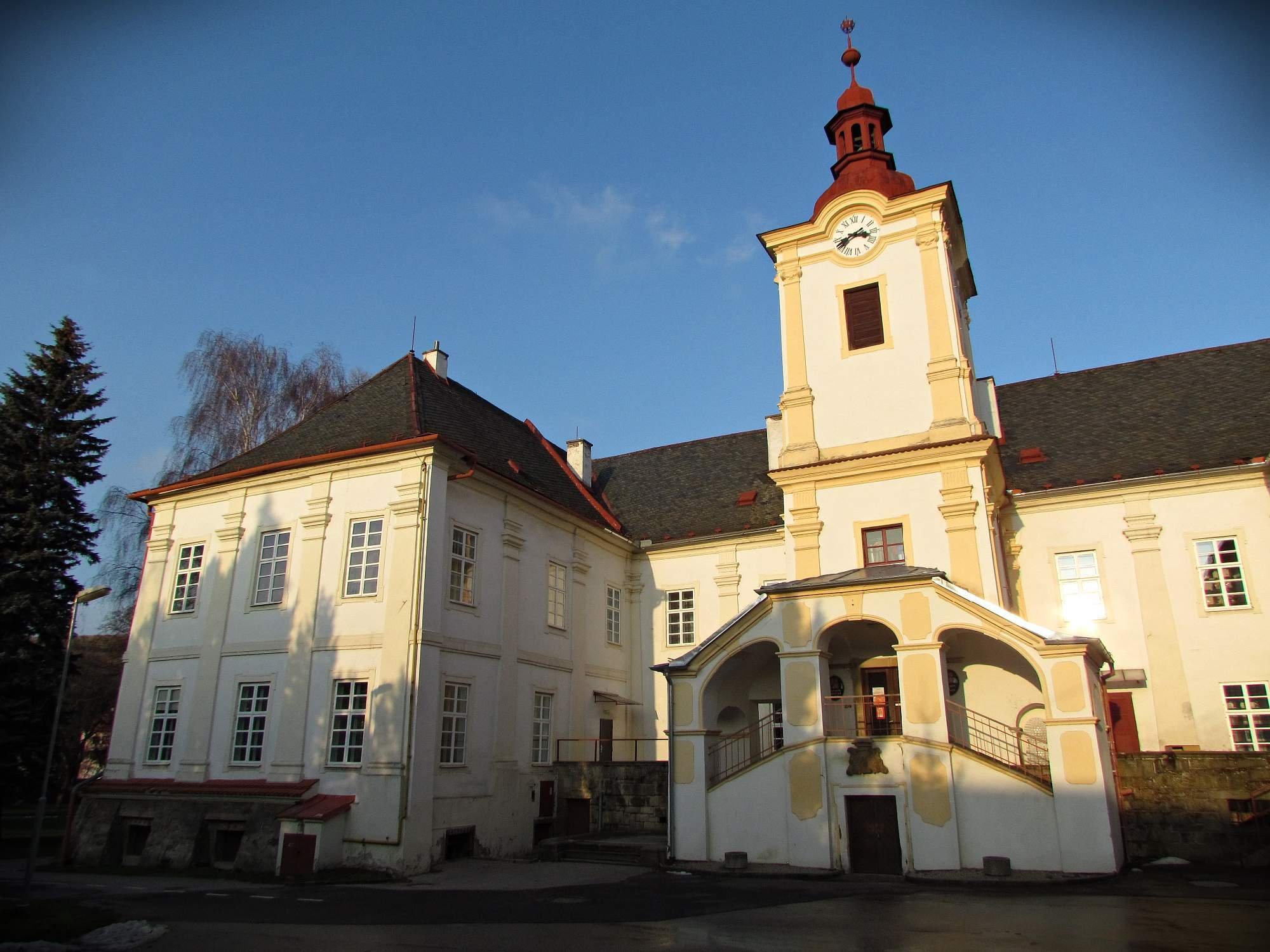 Návštěvníci, kteří do Luhačovic přijíždějí autobusy anebo vlastními vozy ve směru od Uherského Brodu, si na jižním okraji lázeňského města jistě povšimnou budovy malého feudálního sídla spojeného s kostelíkem. Takovýto podobný „kostelozámek“ je k vidění i v Pohořelicích nad Napajedly. Jenže tam stojí zámek a chrám od sebe odděleně a jak pupeční šňůra je spolu spojuje toliko krytá chodba. Kdežto tady v Luhačovicích je kostel přímo vetknut do masy zámku.