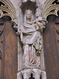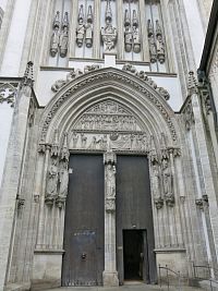 Velkolepý jižní portál je nejpropracovanější portálovou stavbou 14. století v jižním Německu a evidentně nese mistrovskou značku Parléřů. V ostění portálu jsou umístěny postavy apoštolů a na středním sloupu stojí Matka Boží. Třídílný tympanon zobrazuje výjevy ze života Panny Marie. Severní portál z roku 1343 je mnohem jednodušší a téměř kompletně zrekonstruovaný. Jeho tympanon zobrazuje klanění tří králů i výjevy ze života Panny Marie, včetně Zvěstování a Korunovace.