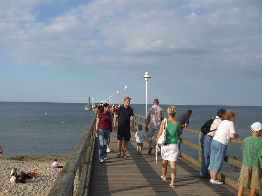 Na Usedomu jsme byli s Martinem a s dcerou celkem dvakrát. Poprvé v roce 2006 jsme naivně mysleli, že seženeme v sezóně místo v jednom z mnoha kempů u moře, což se nám nepoštěstilo a po prosící ceremonii jsme ve večerních hodinách skončili v nějakém neznámém zapadlém kempu u Heringsdorfu, ale na straně u vnitřního moře, kde jsme zaplatili za svažitý terén, jeden stan, auto a mraky komárů 25,- EUR a byli jsme rádi, že se alespoň trochu vyspíme. Večer jsme ale neodolali a vyjeli jsme do Heringsdorfu, který nás mile překvapil skvělou atmosférou, osvětlením, molem a večerním koncertem, že jsme skutečně výletu na Usedom nelitovali. Ale druhý den jsme vyrazili raději tam, kde už jsme to znali – na Darss a Zingst.
