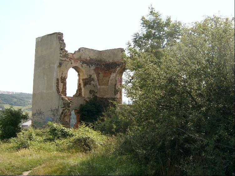 Výrazný holý výběžek nad řekou Vltavou počítá svojí historii až do pravěkých časů - sídliště z pozdní doby Kamenné bylo hrazeno příkrým srázem k řece, ale rovněž až 6m širokým příkopem s palisádou. V dnešní době tvoří zdáli viditelnou dominantu malá zřícenina - ať už viničního lisu, kaple či letohrádku poničeného bavorksými a francouzskými vojsky v půli 18. století (podle toho, jaká teorie o původu této stavby je vám bližší). Teprve až v devatenáctém století se rozvalina dočkala pseudogotického oblouku, jenž do ní vsadili dělníci od stavby železnice.