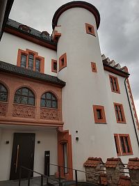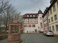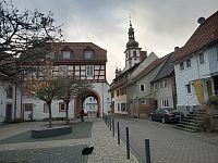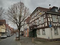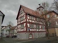 Bývalá radnice z roku 1703 s valbovou střechou a cibulovitou věží (přistavěnou v roce 1866) je jedinou barokní hrázděnou radnicí v Hesensku.