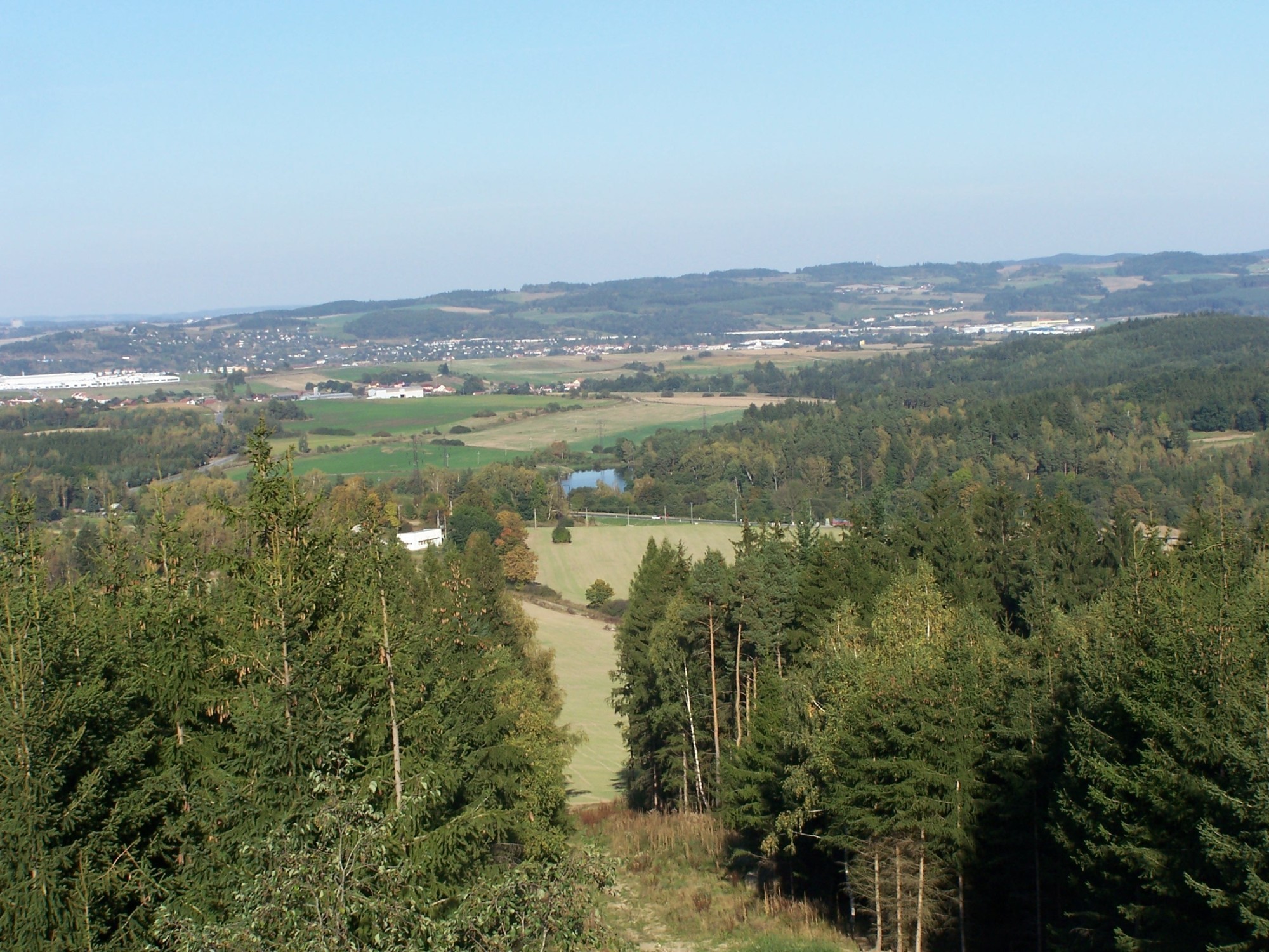 Kruhový výhled tu však nečekejte. Jako na dlani budete mít část Velkého Meziříčí v popředí, Bítešskou vrchovinu a na obzoru hřebeny Žďárských vrchů. Ale pospěšte si, vrcholky okolních smrků bojují mezi sebou o místo na slunci a za nějaký rok můžete z rozhledny uvidět jen šišky v jejich korunách.