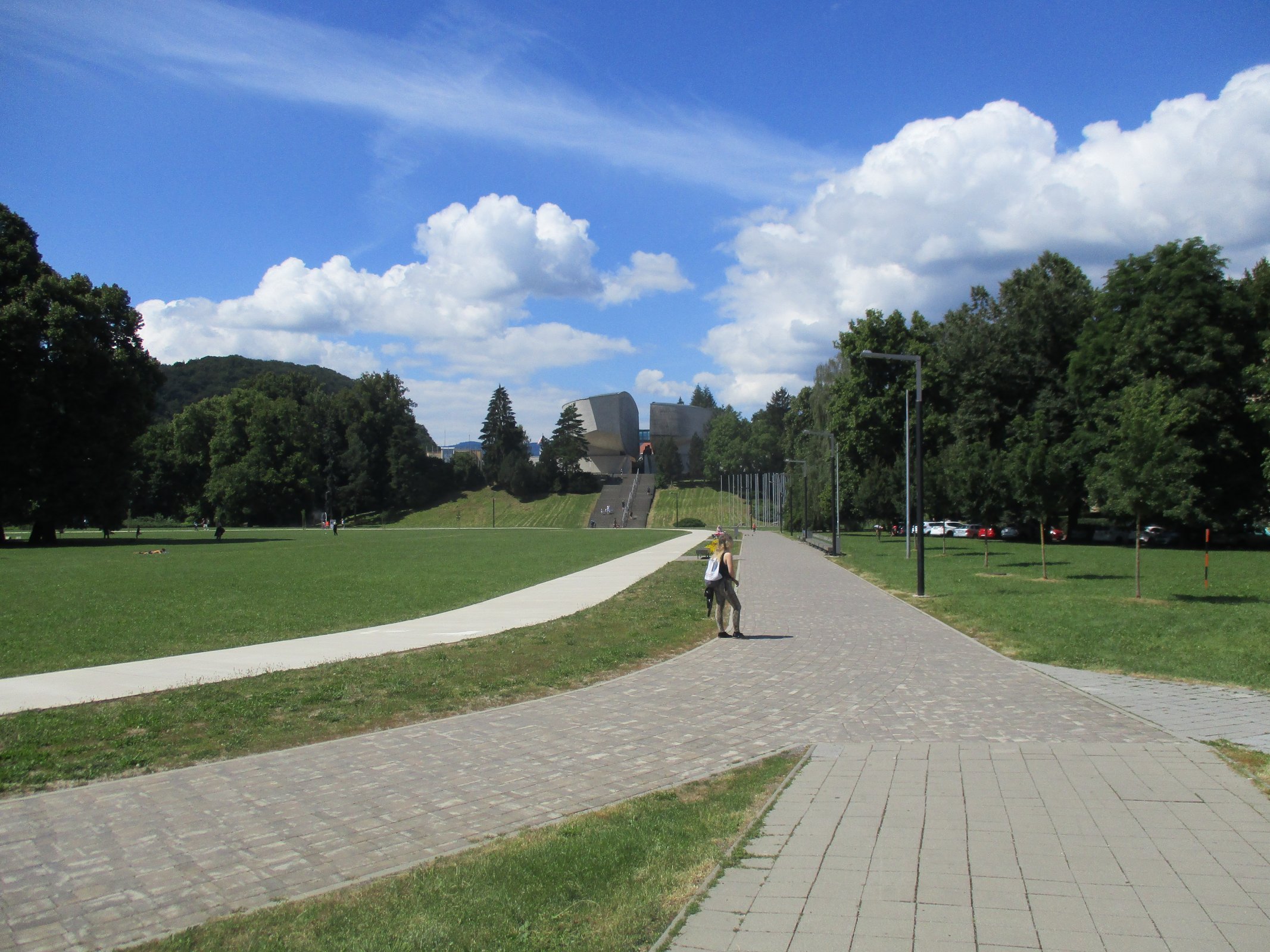 Hlavným cieľom našej návštevy Banskej Bystrice bol Pamätník SNP. Išli sme k nemu od železničnej stanice. Keď sa nám v diaľke ukázal, bol na neho pekný pohľad cez park, ktorý sa nachádzal pod ním. Ide o park, ktorý ako sme sa mohli presvedčiť v čase prázdnin využívajú naplno Banskobystričania. O parku som sa nič nedočítala, tak sprostredkujem len svoje dojmy.