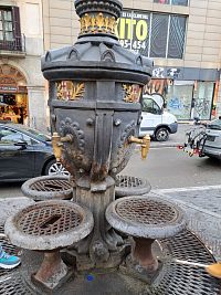 Na začátku La Rambla, kousek od Placa de Catalunya je fontána s pitnou vodou. Říká se, že kdo se z ní napije, tak se vrátí do Barcelony. My jsme vodu ochutnali, tak uvidíme. Překvapivě tam není ani moc lidí, nestojí se fronta. Tak kdoví, jak to je.