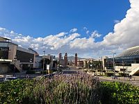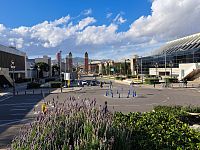 Kousek pod Olympijským stadionem se rozkládá malé náměstí, možná spíše sochařské dílo než klasické náměstí. Jmenuje se Plaça de Europa a uvnitř i po části kruhového obvodu je voda, patrně kašna. Po další části je …