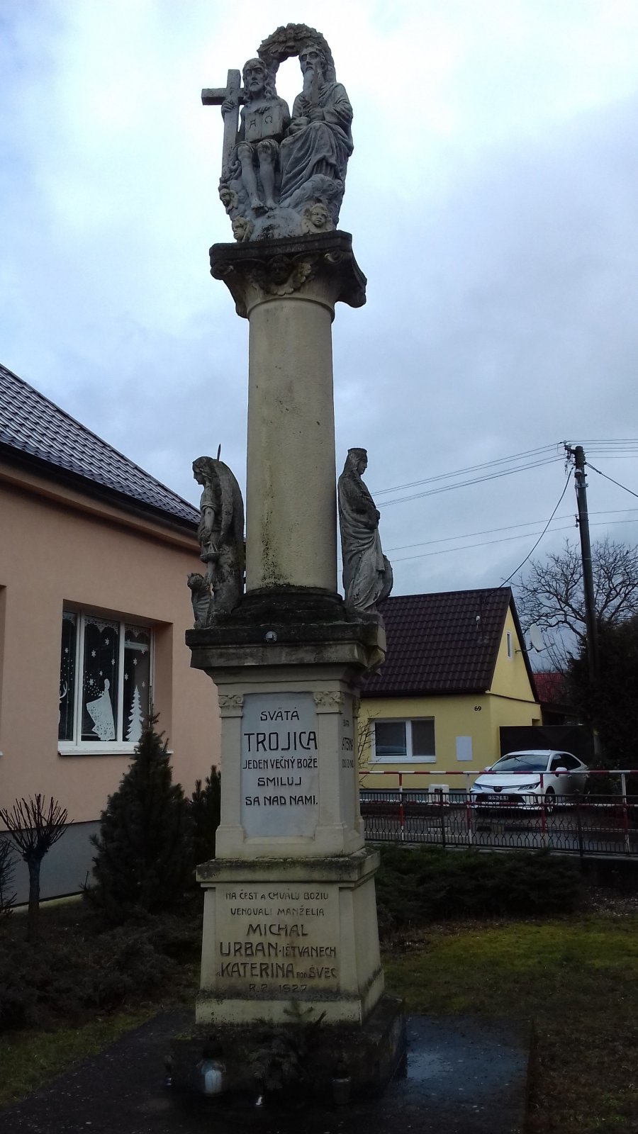 Nad je ďalší nápis s textom SVATÁ TROJICA JEDEN VEČNÝ BOŽE SMILUJ SA NAD NAMI.