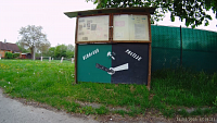 Mým překvapením bylo, že prostředí nevelké osady vypadalo poměrně čisté, na hony vzdálené něčemu, co bych mohl nazvat vybydleným místem. Sám bych v Ostravě našel spoustu jiných míst, které vypadají mnohem, mnohem hůř. Některé cedule s nápisy nebo spíš slogany také nevyznívají „útočně“. Celkově mám pocit z místa neočekávaně dobrý a dokážu si představit, že sousedé vedle sebe žijí vcelku v pohodě. Nikoho zde nepotkávám.