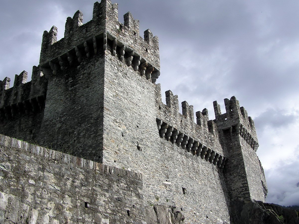 Opevněné město Bellinzona na jihu Švýcarska v kantonu Ticino tvoří tři středověké hrady Castelgrande, Montebello a Sasso Corbaro a římské hradby ze 4.století.