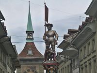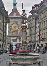 Švýcarský Bern je znám jako město fontán či kašen. Zdejší veřejné kašny - zejména ty v historickém centru - sloužily městu již od středověku k zásobování vodou i hašení požárů. Tyto kašny se postupně měnily v reprezentativní a zdobné figurální fontány. Z celkového počtu téměř stovky fontán vznikly ty nejkrásnější v polovině 16. století a dílně fribourgského sochaře Hanse Glenga. Mezi ty nejzajímavější a nejoriginálnější patří kašna Schützenbrunnen, které vévodí vrcholová postava zdejšího střelce - mušketýra a puškou ozbrojeného medvíděte.