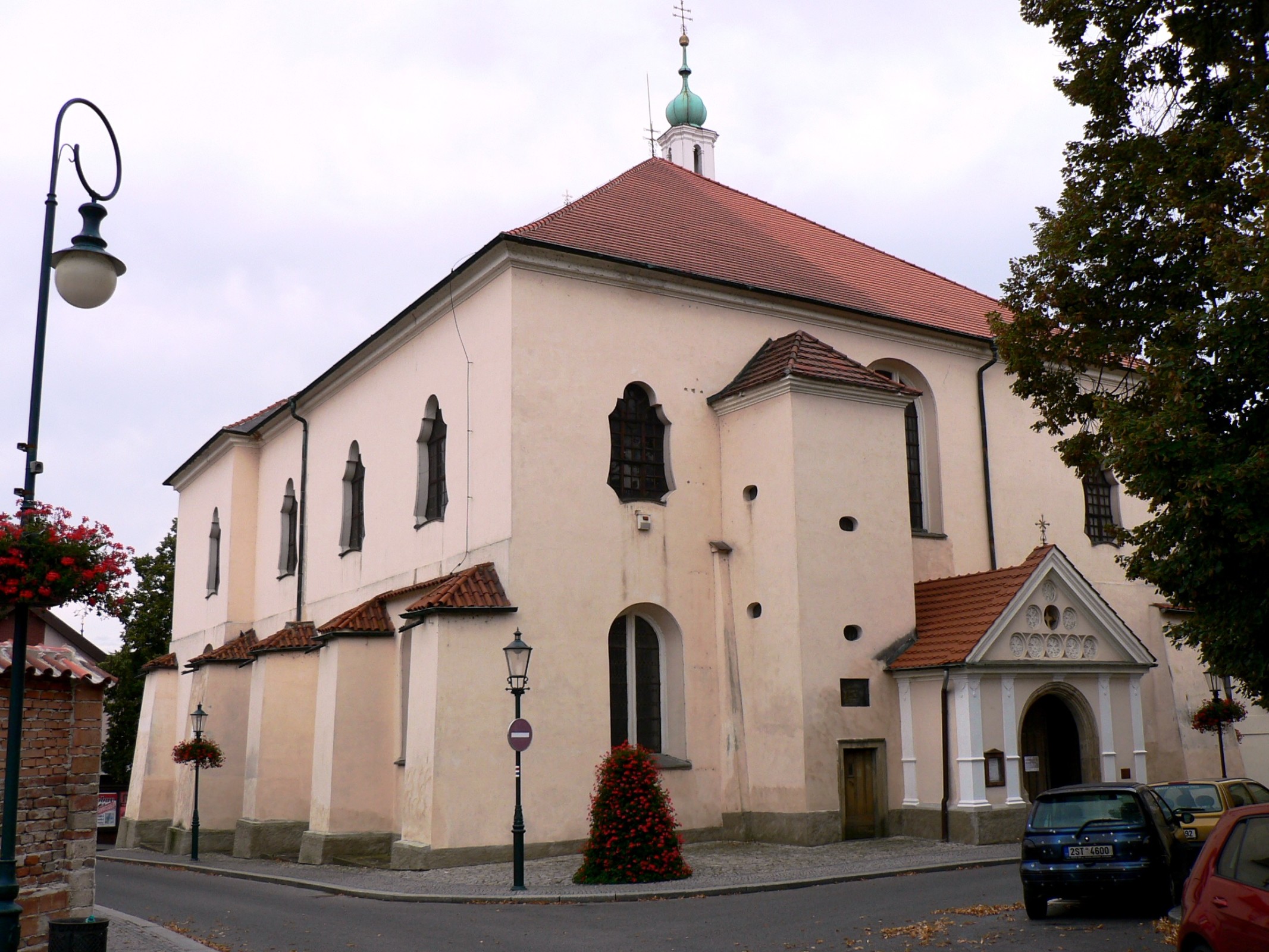 Kostel má několik vstupů. Hlavní s předsíní je na západní straně, na jižní straně je nádherný renesanční portál. Podobný portál vede i z lodi do sakristie. Na východní straně kostela je u zdi umístěn litinový kříž a železná deska manželů Hanikových z roku 1848. Nad vchodem na kruchtu je deska zakladatele městské hudební školy a varhaníka Martina Podstatného.