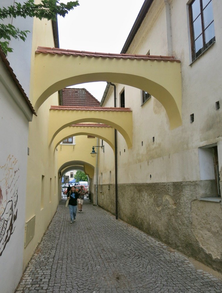 Když ovšem řekneme, že půvab této uličky spočívá pouze ve skupině prampouchů, které spojují (tedy vlastně rozpínají) muzeum s hotelem, bude to působit tak nějak divně. Mnohem lépe už ovšem zní, že řadu prampouchů najdeme mezi dvěma cennými, památkově chráněnými, objekty, kterými jsou dva barokní domy se středověkým jádrem (tzv. Jenštějnský dům a Český Dvůr).