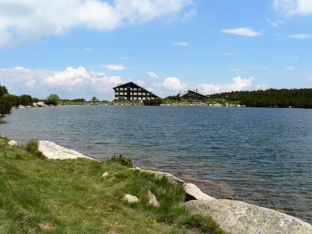 Nedaleko stanice je patrová chata, kde se vaří a je možné tady přenocovat. Odtud pokračujeme k jezeru, které je vzdálené jen několik desítek metrů. Jeho hladina je v nadmořské výšce 2227 metrů. Rozloha jezera je 20,4 ha, dlouhé je okolo 180 metrů a v nejširším místě má 110 metrů. Nad jeho západním břehem se vypíná hora Bezbog ( 2653 m.n.m.). Jezero se dá celé obejít, po západním břehu vede širší cesta, východní břeh je porostlý kosodřevinou a je tu několik pěšinek. Louky u přítoku do jezera jsou z části podmáčené se zajímavou květenou. Mimo jiné tu kvete i hořec pyrenejský, prstnatec májový, několik druhů prvosenek i masožravá tučnice alpská. Z vyšších druhů to jsou červeně kvetoucí kuklíky, žluté kamzičníky a další desítky druhů. Přišel se nám představit i obyvatel z ptačí říše, hýl obecný. Je tu i výrazná žabí komunita, zřejmě některý druh skokanů. Mezi jimi je i jeden, co se rád fotografuje. Jiný svět je na svahu nad západním břehem. Tady kvetou suchomilné druhy s převahou mateřídoušky a kručinky. Mezi ty vzácnější patří žlutě kvetoucí len, některé miniaturní hvozdíky, zlaté mochny a další druhy, které milují sluncem laskané svahy. Aby toho nebylo málo jsou tu ještě zástupci hmyzu, mezi kterými hrají prim motýlci. Bohužel je tu opět opuštěný, skoro zničený objekt, který na kráse jezeru určitě nepřidává. Navíc to vyšlo i s počasím a tak jen neradi jsme se s tímto hezkým místem Pirinu loučili. Závěr dne patřil posezení v hospůdce u dolní stanice lanovky se zjištěním, že bulharské pivo je docela dobré.