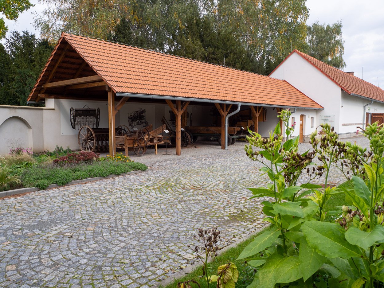 Ve venkovní kryté části najdeme nějaké ty větší zařízení (mlátička, povoz, žací stroj, secí stroj atd).