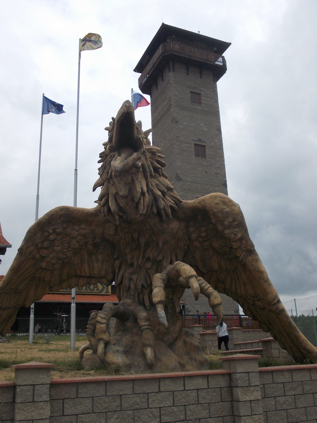 Už pri prvom pohľade na obrovských vtákov pred penziónom - krkavcov sme si tipli, že ich autorom je Michal Olšiak, ktorého pieskové sochy sme už obdivovali v Lednici. Rumburaka si pamätáme zo seriálu Arabela, tu ale Jiřiho Lábusa neuvidíme, názov penziónu a rozhľadne si zvolili manželia, majitelia tohto areálu podľa ich vtáčieho miláčika, ktorý má takéto meno.