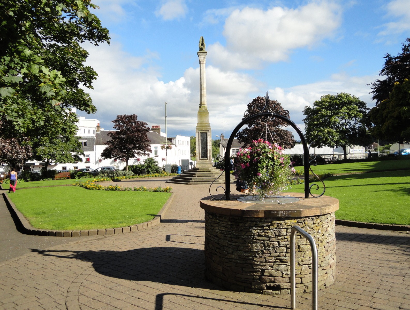 Městečko Blairgowrie tvoří vlastně dvě části Blairgowrie a Rattay. Jednou v podvečer jdeme doplnit zásoby, hlavně pečivo a tak máme možnost se trochu po městečku projít. Na malém náměstíčku uprostřed parku se tyčí pomník obětem I. a II. světové války, ale i obětem ze současných mírových operací. Nadace na vybudování pomníku byla založena již v r. 1919. Projekt vytvořil známý skotský sochař Alex Carrick (1882 - 1966) tvůrce mnoha válečných pomníků. Pomník v Blairgowrie odhalen v r. 1921, jména obětí dalších válek postupně doplňována.