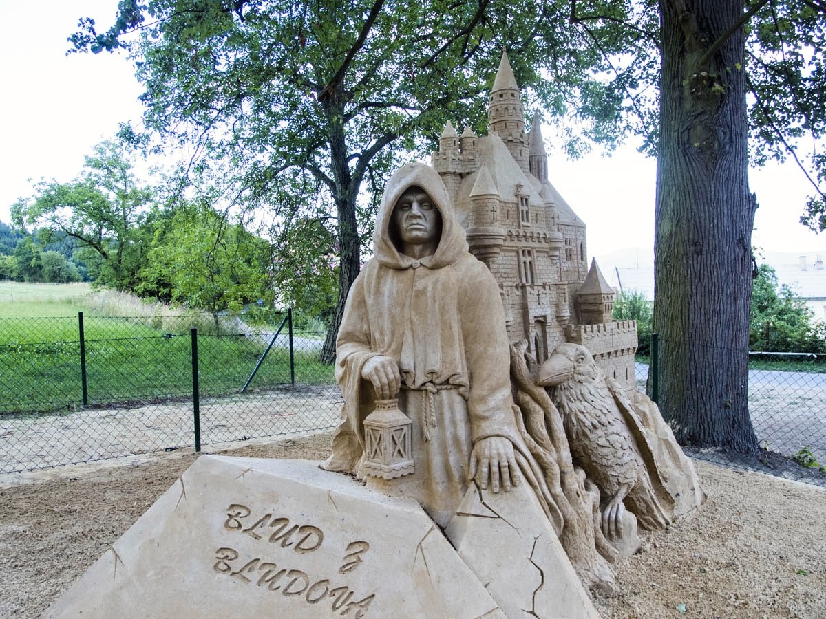 V rámci znovuotevření (prozatím částečné) hospody na Bludovečku, tedy místní části Bludova pod návrším, kde hrad stával, vznikla před zahradní restaurací socha z písku, která rytíře zpodobňuje. Podoba hradu je zřejmě velmi volná. Podle všeho byl hrad spíše dřevěný než kamenný. Ostatně řada návštěvníků se mylně domnívá, že jde o Bouzov. Autory sochy jsou Jakub Zimáček ze Šumperka a Jan Zelinka z Brna, kteří se vypracovali ve světovou extratřídu, pokud jde o tvorbu děl z podobného materiálu.