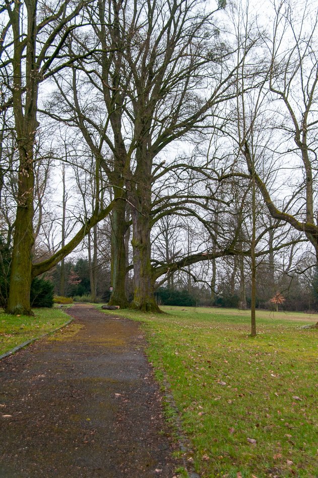 Poměrně velké shromáždění starších stromů tvoří alej v západní části parku poblíž fotbalového hřiště (které je za plotem).