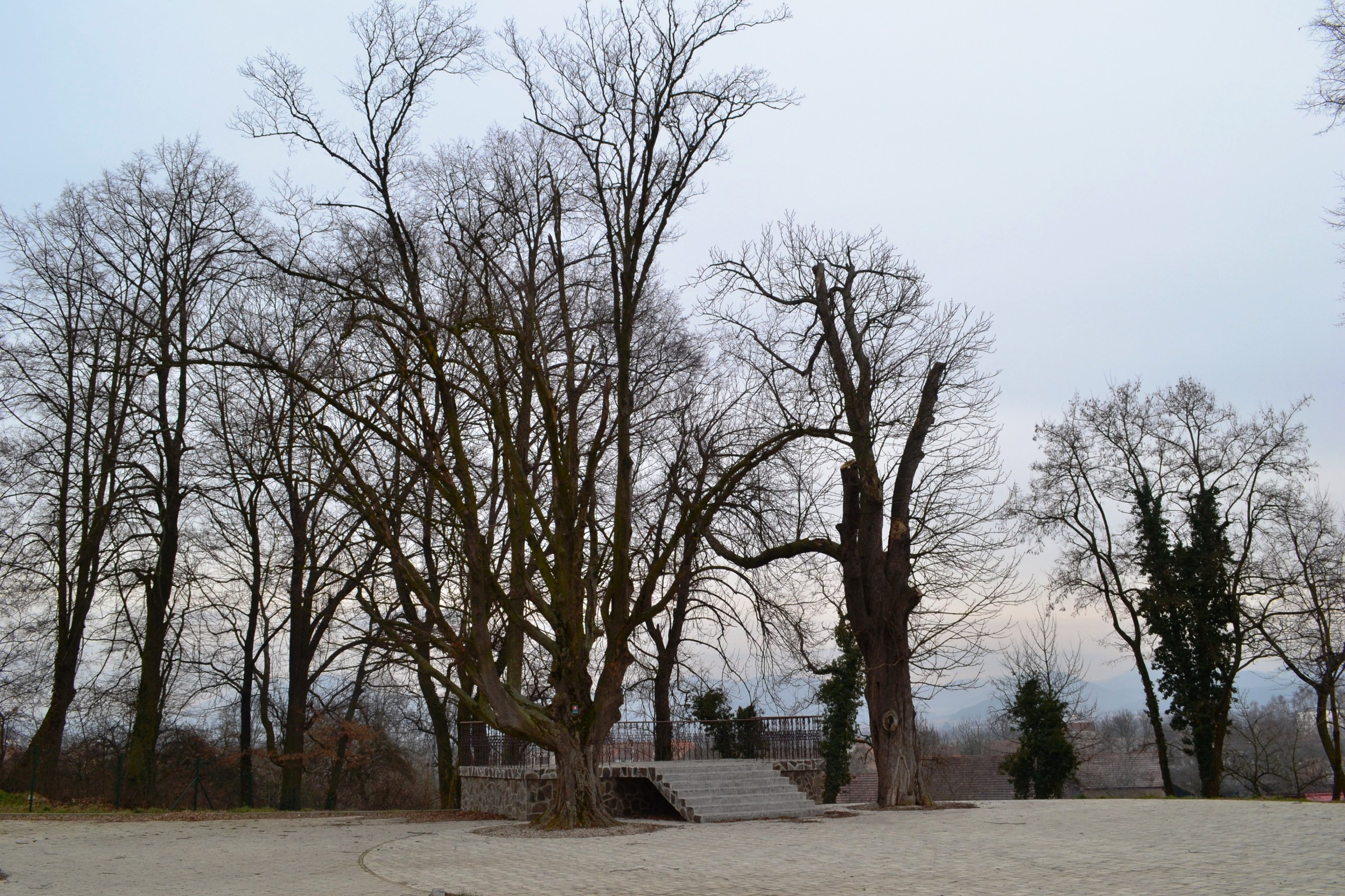 pohľad na stromy neďaleko kaštieľa