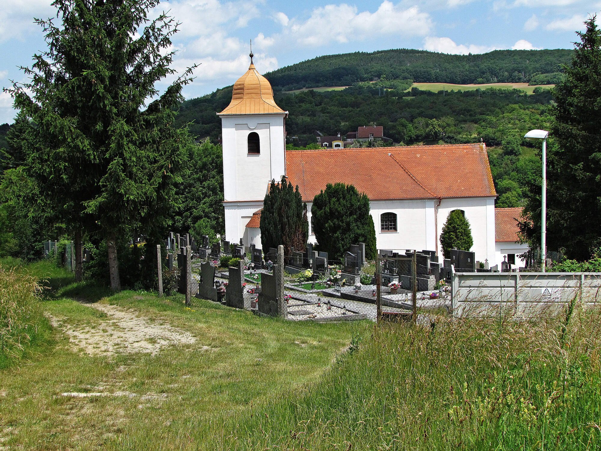 Kostel obklopený hřbitovem se tyčí ve svahu na obcí Bohuslavice u Kyjova, která je jeho místní částí. Poprvé je existence dnešního památkově chráněného objektu v análech zmiňována Léta Páně 1371, což dosvědčuje nástěnná malba s tématem Ukřižování odkrytá v jeho interiéru roku 2000. Raritou je, že na ní není Kristus zpodobněn na kříži, ale na živém stromě.