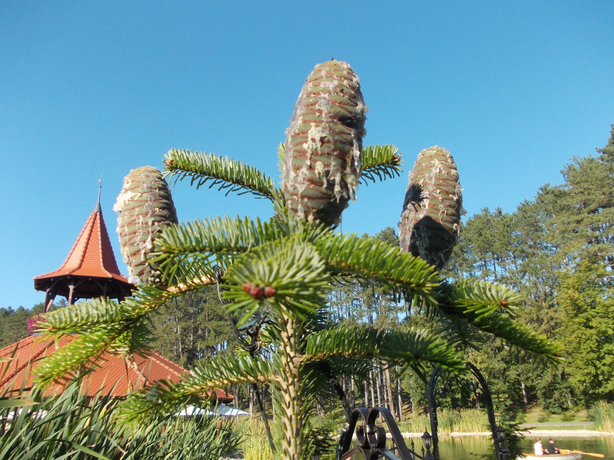 jedna z dvoch veží ležiaca neďaleko jazierka