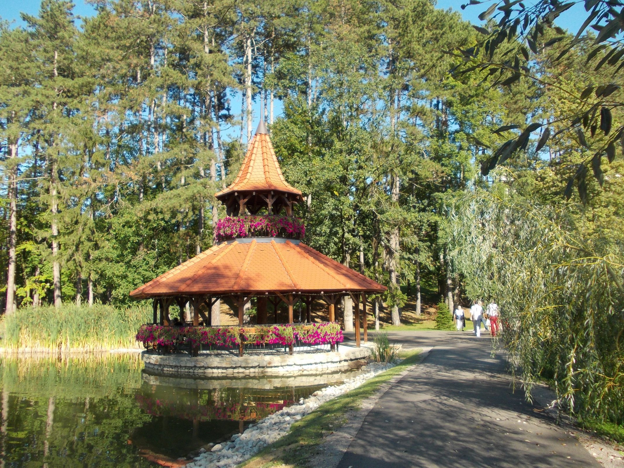 jazierko, vežičky a veľká drevená socha v pozadí  autor: bublinko2