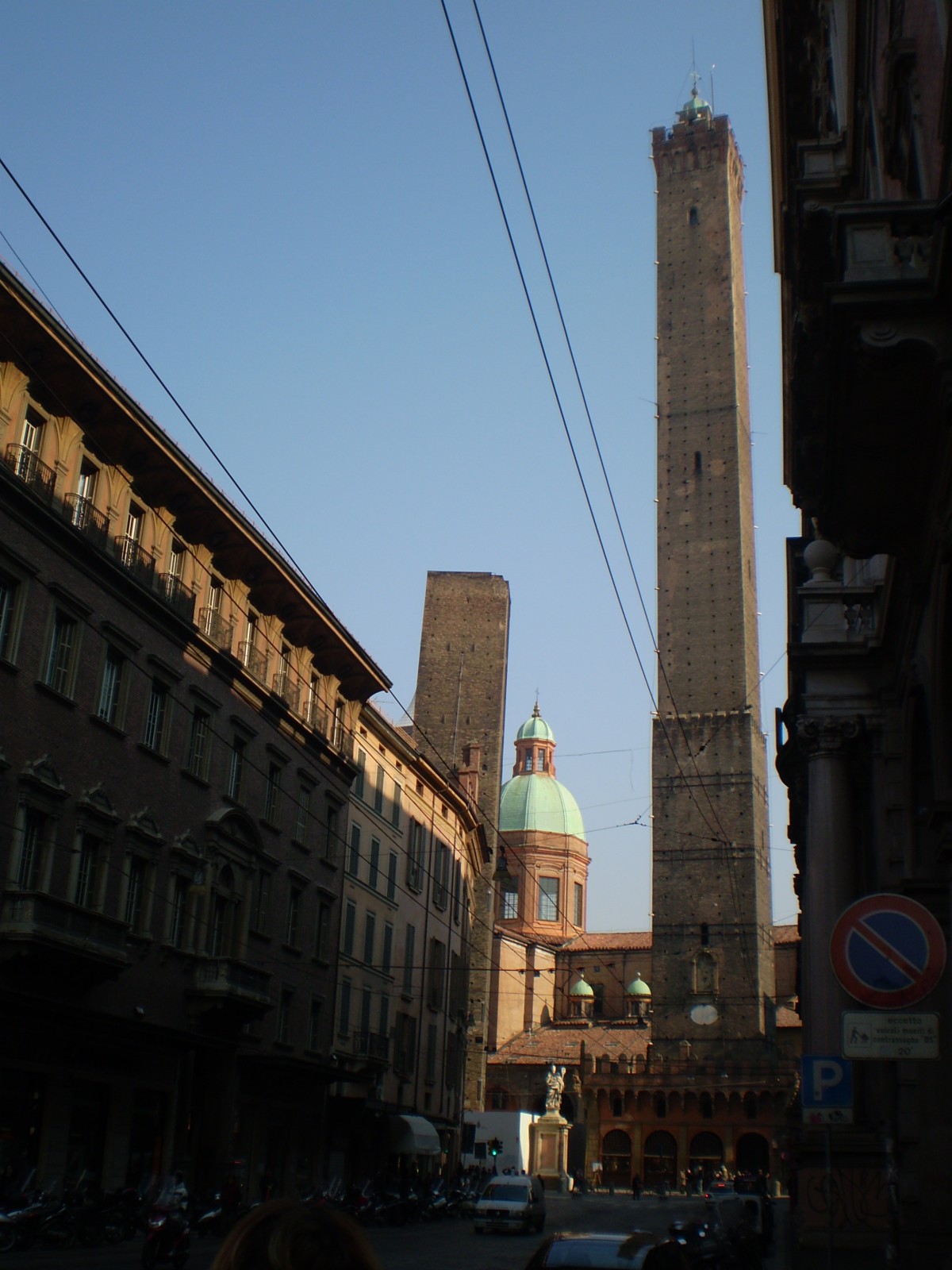 Tyto dvě slavné bolognské věže na náměstí Piazza di Porta Ravegnana se začaly budovat ve 12. století. Garisenda musela být kvůli bezpečnosti snížena. Dnes je nakloněná asi 3 metry od své osy.