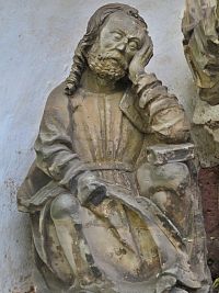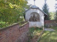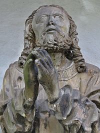Sousoší s tématem Olivetské hory je pozdně gotickým dílem neznámého autora. Je vytvořeno z pískovce a zobrazuje – v podživotní velikosti - Ježíše Krista se dvěma apoštoly. Na soklu, představujícím zřejmě trávník, klečí Ježíš se sepjatýma rukama mezi sedícími apoštoly Petrem a Janem. Roucha všech tří postav jsou bohatě řasená, u apoštolů přepásaná a částečně zakrytá plášti. Všichni muži mají dlouhé kučeravé vlasy.