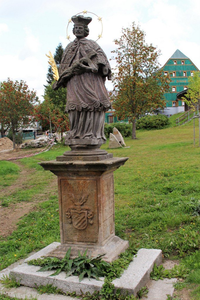 Ulice v jižní části městečka je jedním velkým hotelem. Každý dům je buď hotel, pension nebo jen restaurace. Když se projde od parkoviště asi do její poloviny, otevře se po levé straně výhled na kostel sv. Anny. Nelze ani přehlédnout hezkou barokní sochu sv. Jana z Nepomuku při ulici ke kostelu. Samotná socha stojí na hranolovém podstavci. Byla vytvořena v roce 1707 a její větší oprava byla provedena v roce 1781. Nemůže uniknout její velmi hezké zpracování. Kdo je tvůrcem se mně zjistit nepodařilo. Od sochy je hezký pohled na kostel, hotel Zelený dům a městečko v údolí.