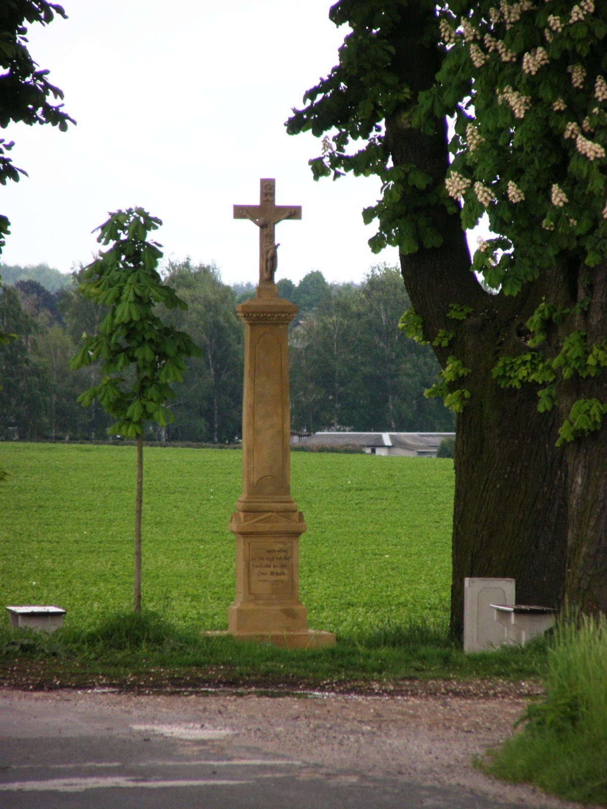 Boží muka s ukřižováním Ježíše Krista najdeme u vzrostlých kaštanů (jílovců maďal) cca v půlce cesty mezi Bašnicemi a Milovicemi. Postavena byla jako modlitební místo na cestě procesí do milovického kostela. Přesný datum vzniku díla není znám, ale zcela jistě před rokem 1852, kdy jsou muka zmiňována v místní kronice.