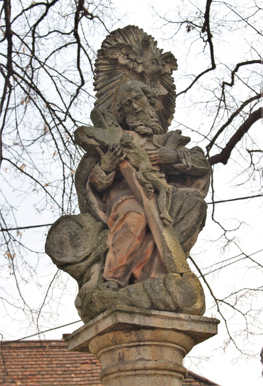 Nachází se v místní části České Křídlovice poblíž kostela sv. Petra a Pavla. Pochází z roku 1747, jeho rekonstrukce proběhla v roce 1838. Na toskánském sloupu s hranolovým podstavcem se vypíná skulptura Boha Otce trůnícího v oblacích, krucifix a Holubice.