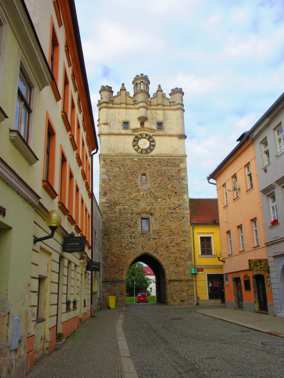 První úpravy městského opevnění však přišly již v 15. století, kdy vznikla předsunutá zemní opevnění, valy a náspy, k nimž koncem třicetileté války přibyly bastiony, o jejichž zřízení se zasloužili Švédové. Sama brána prošla další úpravou již v roce 1548, kdy získala novou zvýšenou věž na místě staré nižší s taškovou krytinou a okna z cihlových tvarovek. Vedle toho bylo provedeno její omítnutí, vybudovány vnitřní kamenné schody a klenba nad průjezdem, upravena a vyzdobena vrchní část věže s makovicí, opraveny hodiny a pořízeno k nim nové kamenné závaží, nově obložen prkny padací most a pořízen nový klíč k bráně. Avšak roku 1551 došlo k požáru města, následkem čehož obdržela brána v roce 1564 2 cihlová podlaží a završení v podobě renesanční krenelované atiky. Díky tomu dosáhla současné výšky 24 m, přičemž věžní koruna je zdobena atikou.