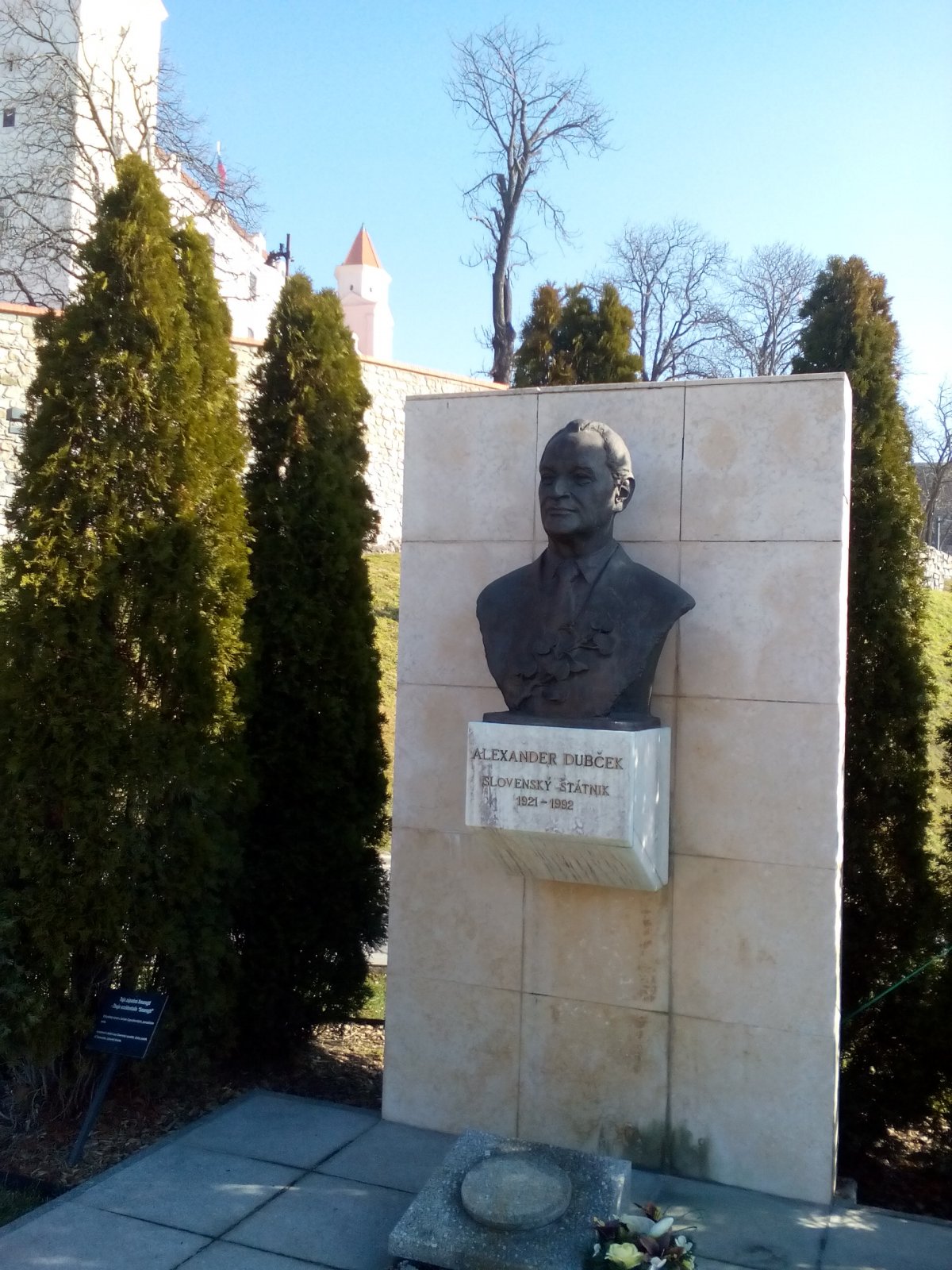 Busta Alexandra Dubčeka bola odhalená v auguste 2002. Autorkou takmer vysokej busty je akademická sochárka Ľudmila Cvengrošová. Na diele ďalej spolupracovali akademický sochár Marian Balážik, Ladislav Sabo, architekti Ľudovít Jendreják a Peter Puškár.