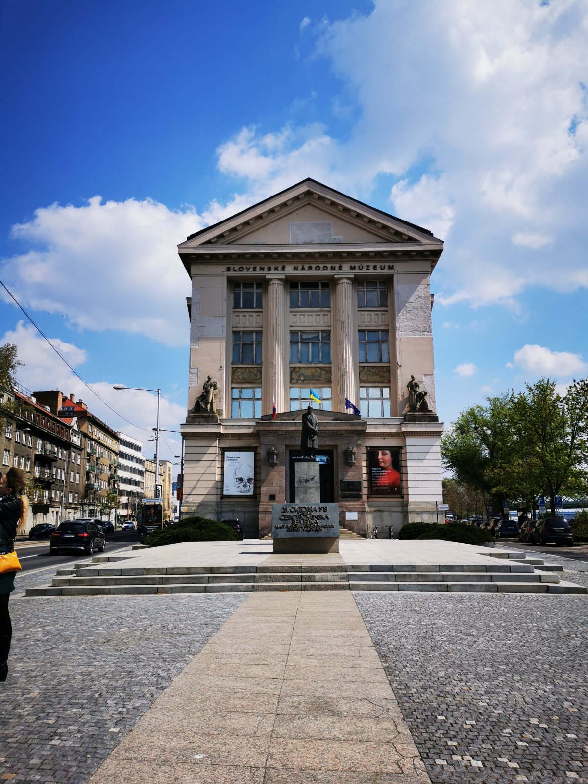 Pred budovou SNM sa nachádza socha prvého prezidenta Československej republiky T.G.Masaryka.