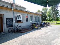 Bouda u vody je v dřívějším označení slušná čtyřka, nabízí pár stolů ve vnitřních prostorách, ve vedlejší místnosti možnost zábavy v pošmourném počasí. Nechybí venkovní posezení. Výčep a bar poskytuje vše základní ze sortimentu pivo • limo • párek. Skupina vodáků si ovšem zrovna dávala zelenou. V nabídce je i něco k zakousnutí (viz tabule v galerii). Otevřeno je od úterka do neděle, doba otevření je ale odvislá podle počasí (viz vysvětlující text v galerii).